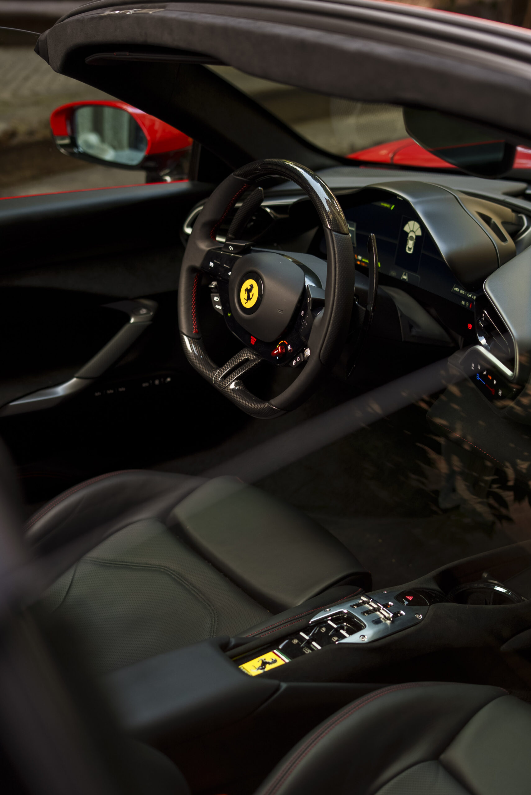 Versione spider della 296 GTB, la 296 GTS ne conserva intatta l’anima più pura aggiungendo il piacere della guida a cielo aperto. È la prima Ferrari V6 scoperta stradale della storia del marchio, e abbina un raffinato 3.0 biturbo, nuovo in ogni componente, a un motore elettrico montato tra il termico e il cambio robotizzato a doppia frizione a 8 rapporti. Il V6 eroga 663 CV, che sommati ai 167 dell’unità elettrica portano la potenza complessiva a 830 CV: numeri da supercar, nonostante la natura ibrida plug-in che consente di percorrere fino a circa 25 km in modalità elettrica.