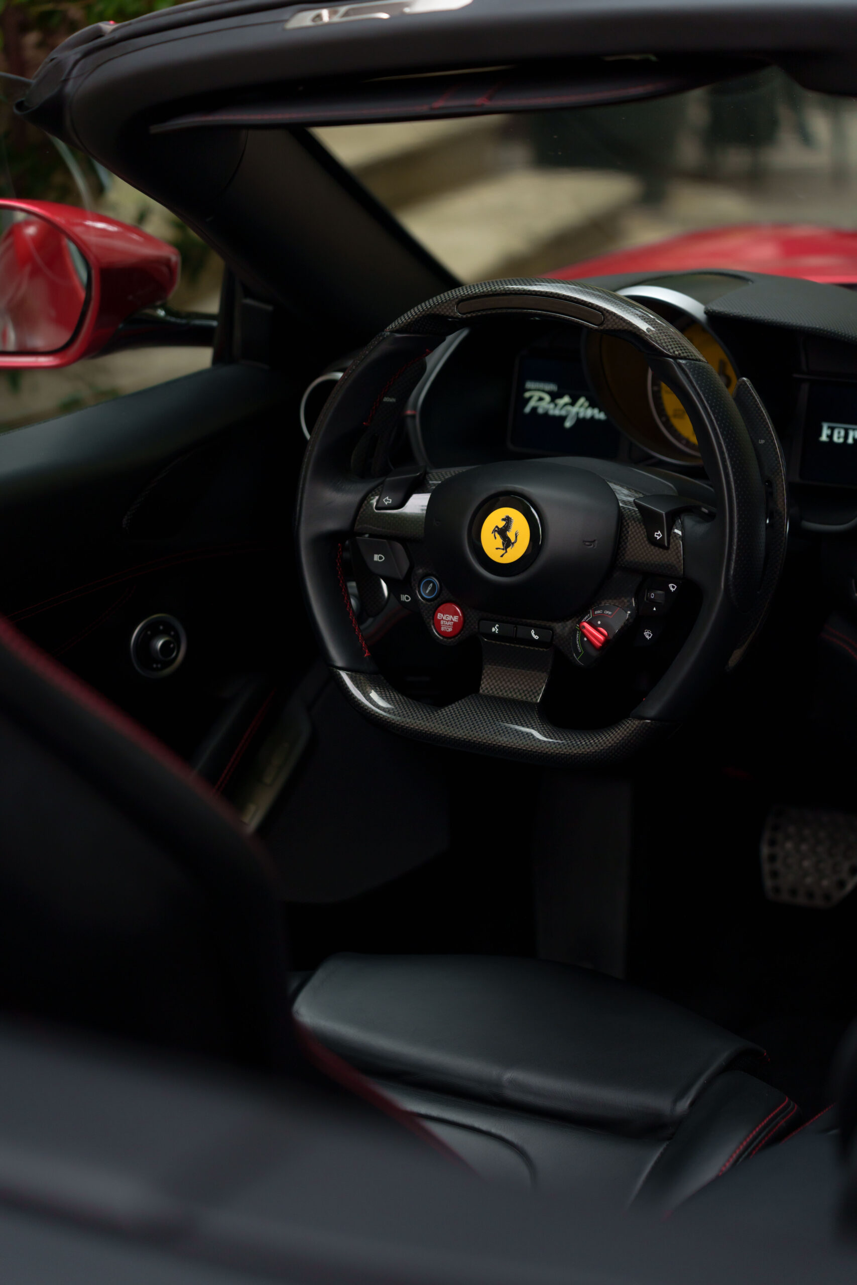 Erede della California, la Portofino rappresenta l’interpretazione più elegante e versatile della sportività Ferrari: una granturismo 2+2 con tetto rigido retraibile che non rinuncia alle prestazioni pure. Sotto il lungo cofano anteriore pulsa un V8 3.9 biturbo, montato in posizione arretrata-centrale, capace di erogare 600 CV, con una risposta pronta e una progressione poderosa che culmina oltre i 7.500 giri. Il cambio robotizzato a doppia frizione a 7 rapporti è rapidissimo e fluido, ideale tanto nella guida rilassata quanto quando si decide di affondare il gas.